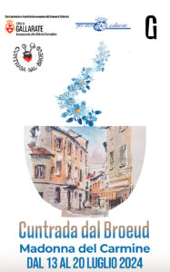 LA STORIA:  La tradizione racconta che la zona compresa tra via San Giovanni Bosco, via dei Fiori ,via Cadolini, e i vicoli del Gambero e Volpe fosse il borgo più popolare di Gallarate: qui veniva distribuito il brodo a basso costo per gli operai impiegati nei laboratori e opifici che iniziavano a sorgere in città. In occasione del primo Palio di Gallarate nel luglio del 1948, la distribuzione del brodo assunse il carattere di tradizione e fu associato alla celebrazione della festa della Madonna del Carmine che ricorre in quei giorni.