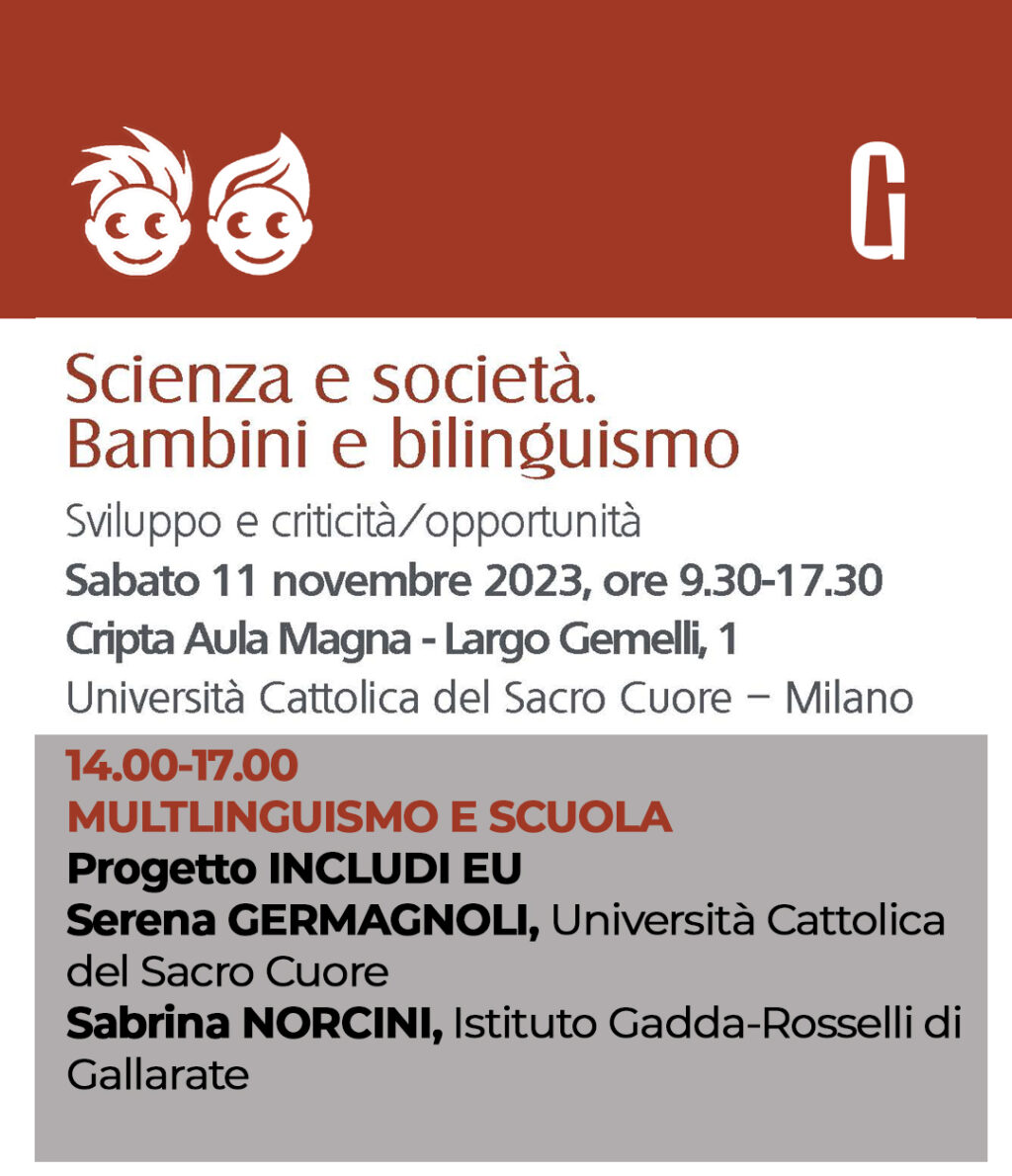 CONFERENZA: Scienza e società. Bambini e bilinguismo Sviluppo e criticità/opportunità Sabato 11 novembre 2023, ore 9.30-17.30 Cripta Aula Magna – Largo Gemelli, 1 Università Cattolica del Sacro Cuore – Milano Contributo del Comune di Gallarate qual...
