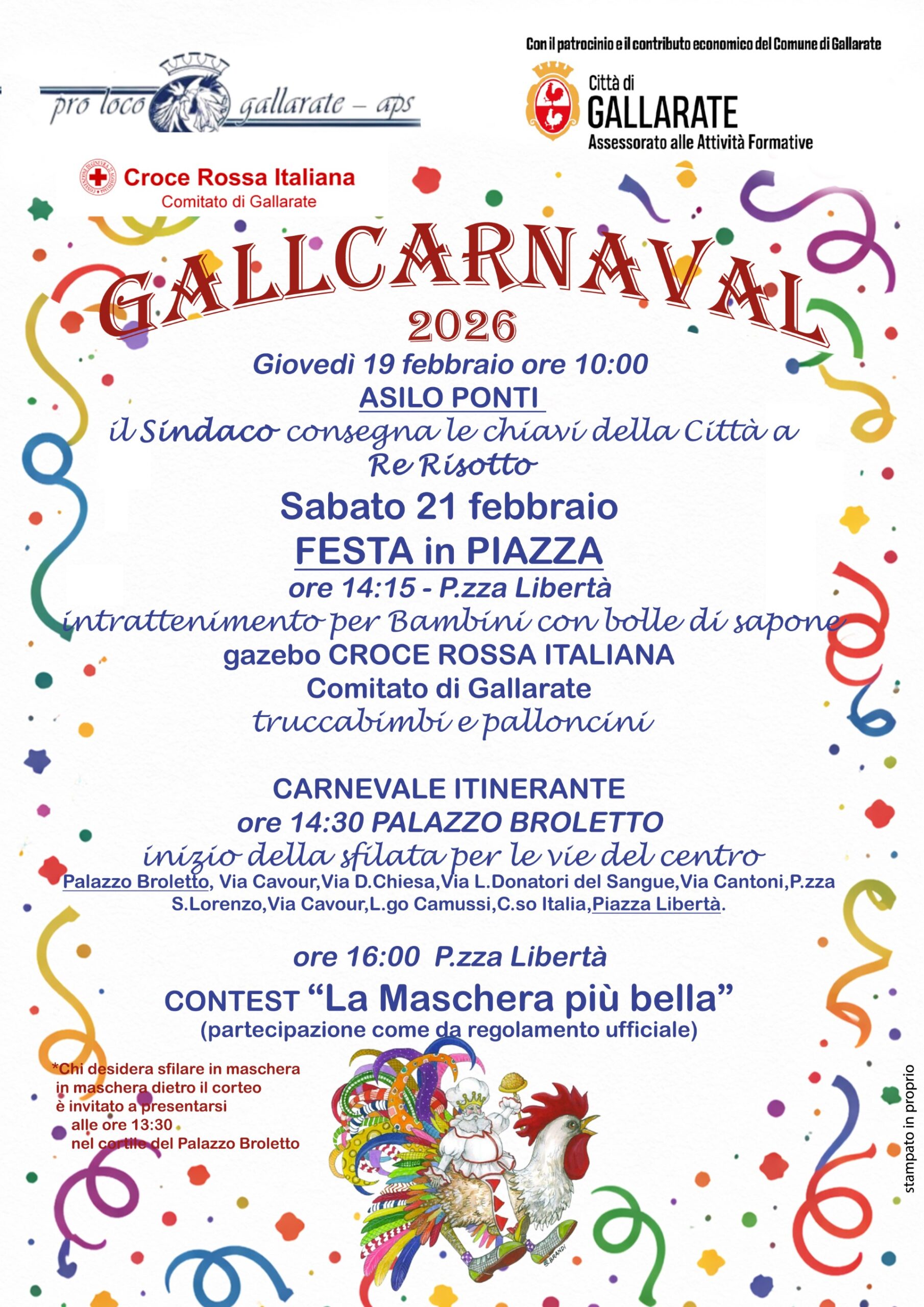 Ore 10:00 Asilo Ponti: il Sindaco consegna le chiavi della Cittàa Re Risotto.Sabato 21 febbraio